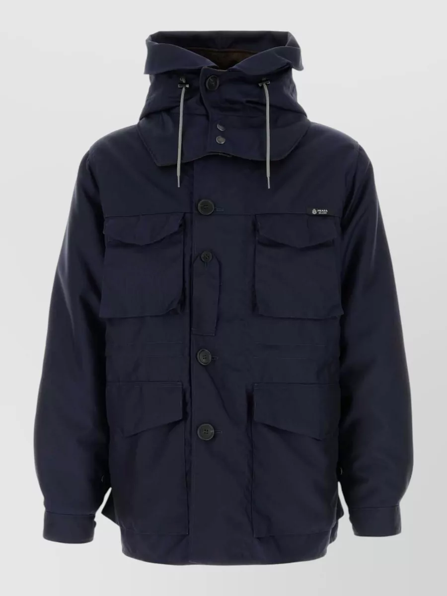 Prada hooded wool blend jacket multiple pockets