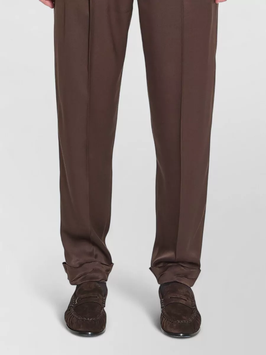 Saint Laurent silk mid-rise wide-leg cuffed tailored trousers