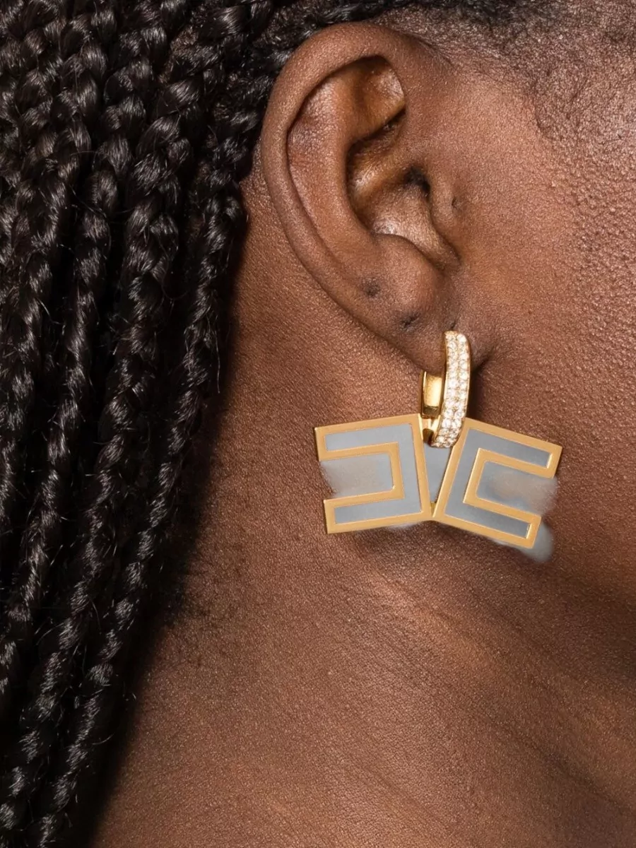 Elisabetta Franchi geometric drop earrings gold crystal pair