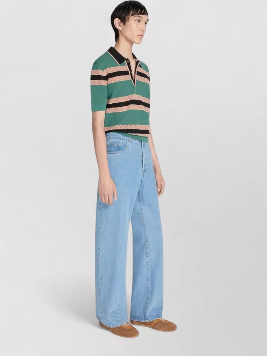Dries Van Noten mercy viscose mesh striped polo shirt