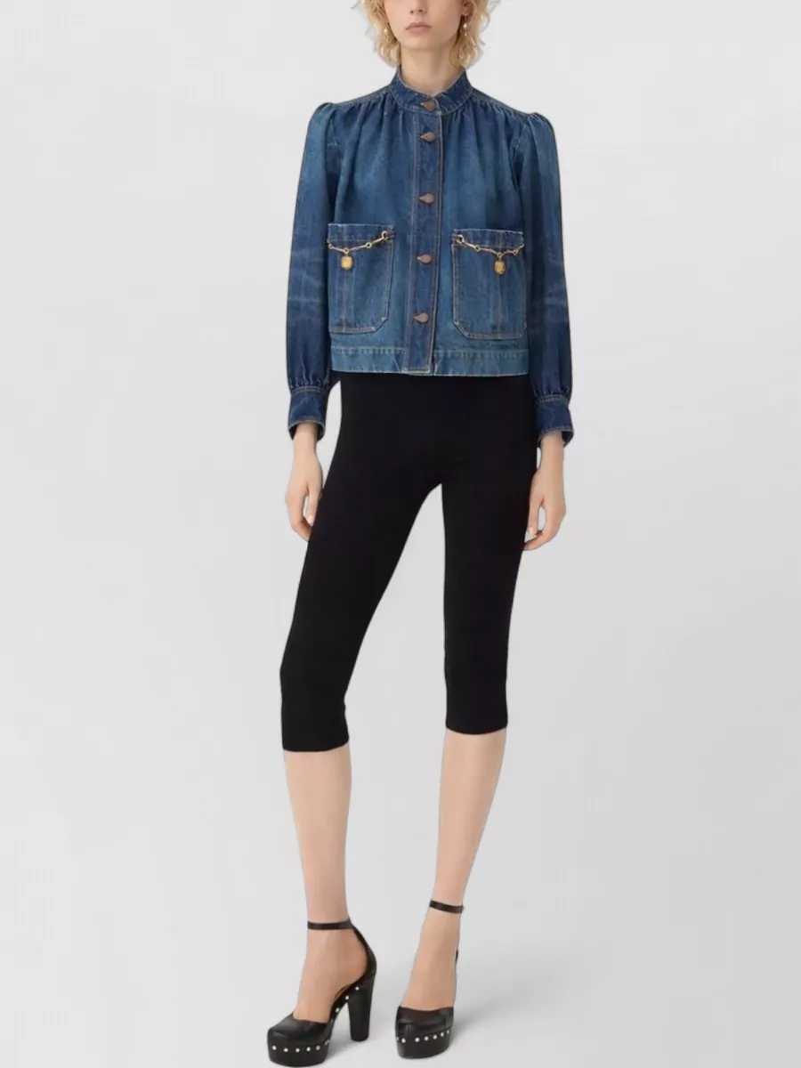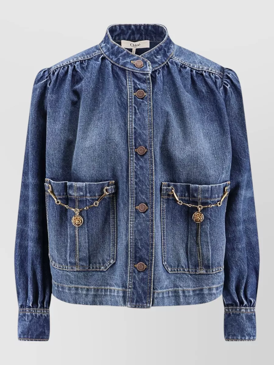 Chloé denim high neck gathered cropped jacket
