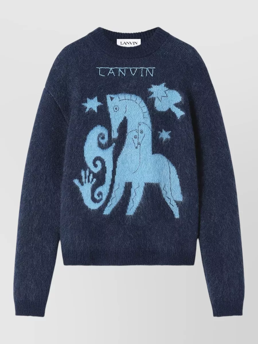 Lanvin crew neck horse jacquard knit sweater