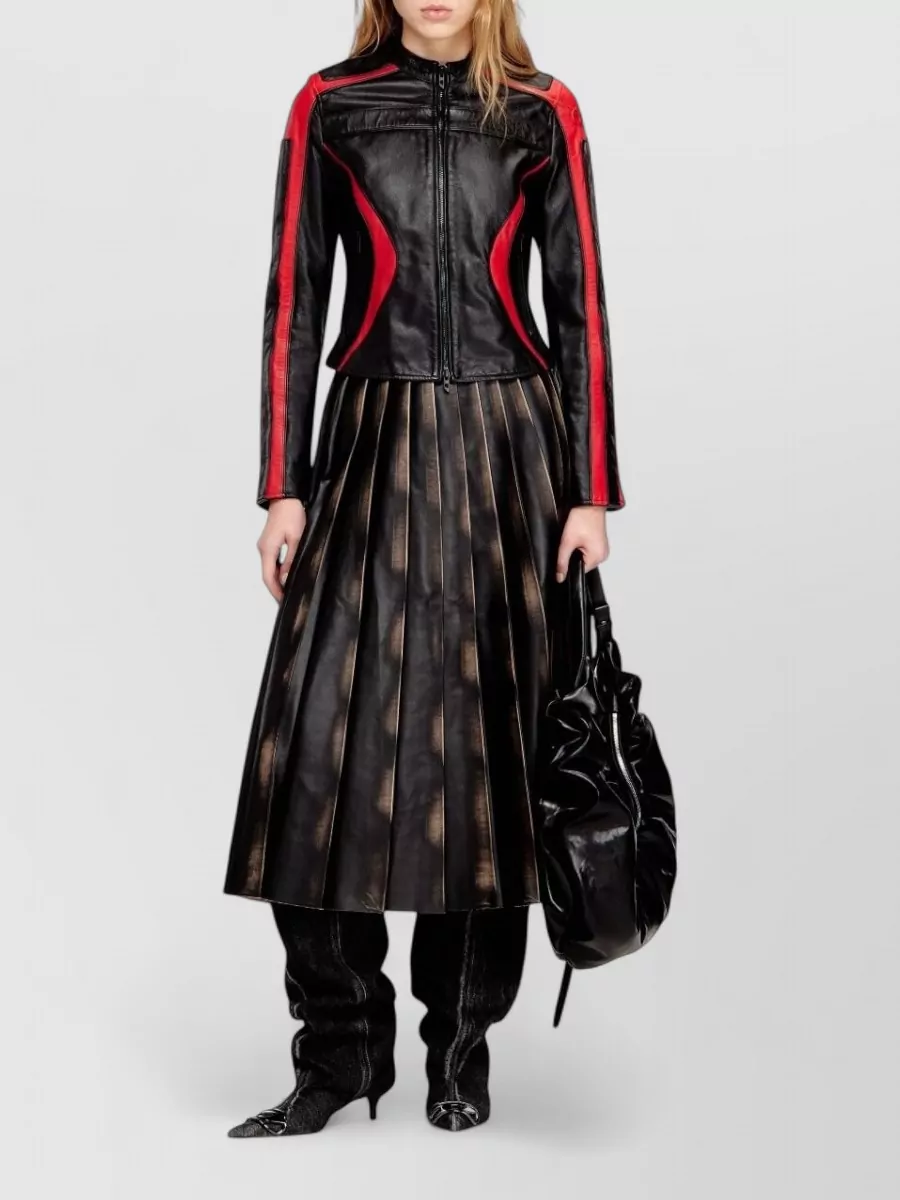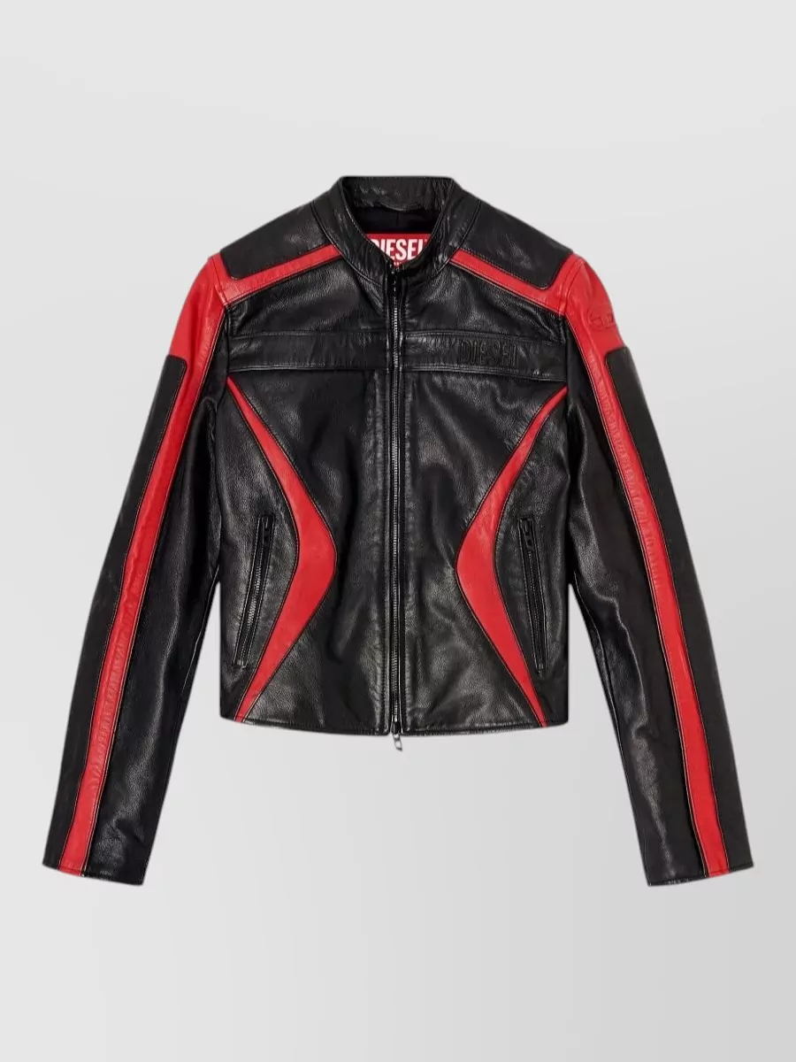 Diesel leather jacket color block stand collar