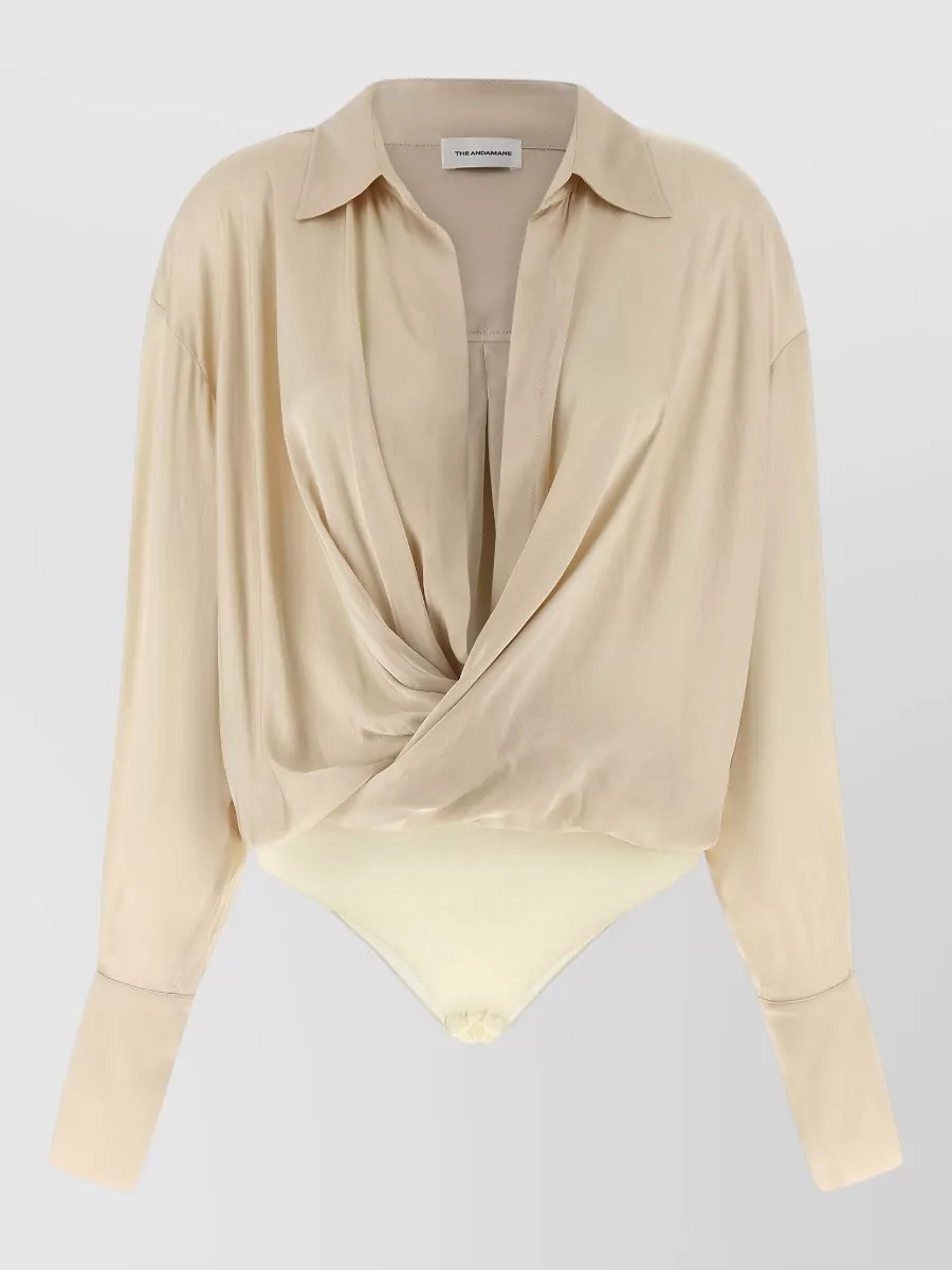 The Andamane off-shoulder draped long-sleeve bodysuit