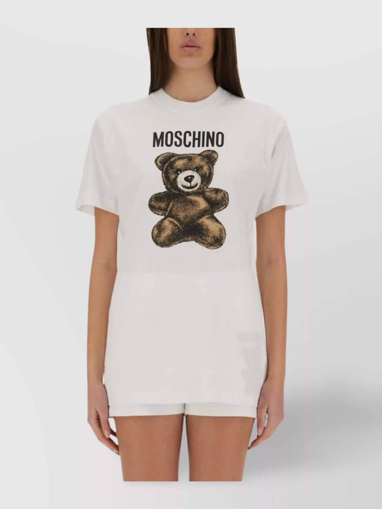 Discover more MOSCHINO Tops MOSCHINO Clothing TopsDesigned for a regular fit through the bust and waist with a classic crew neckline and straight hem
