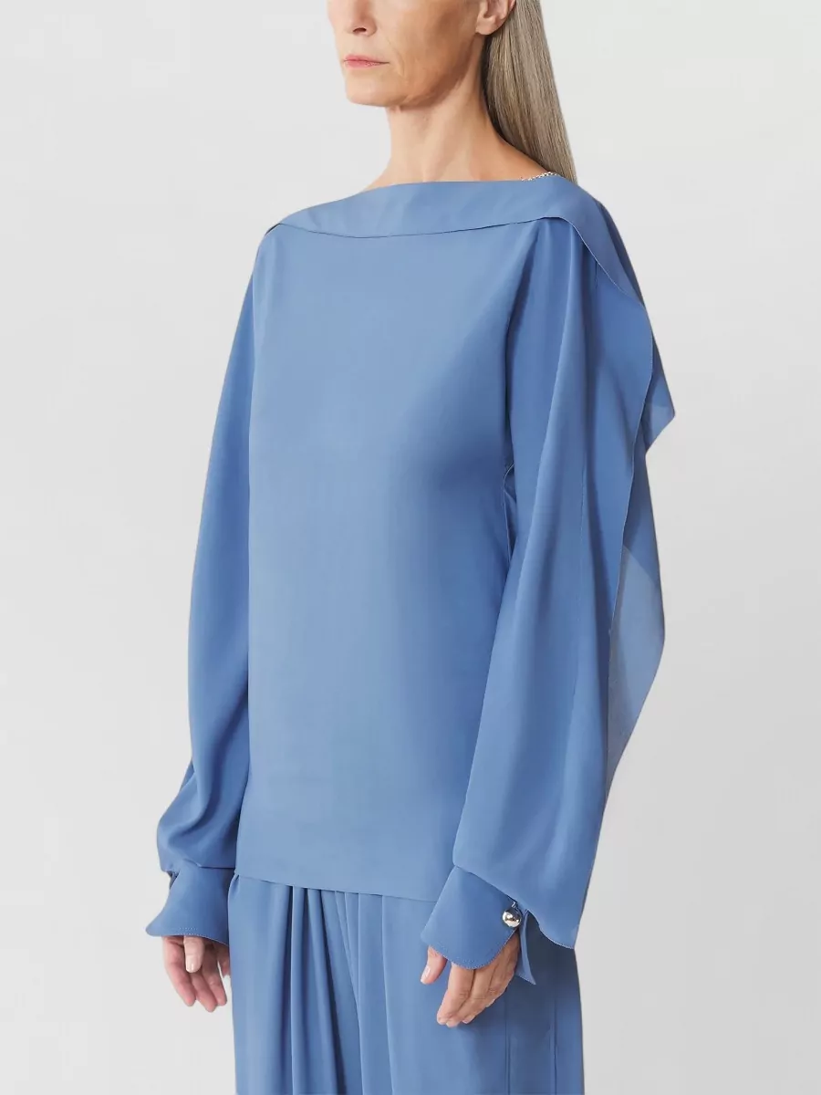 Lanvin gathered tie-neck v-neck long-sleeve blouse