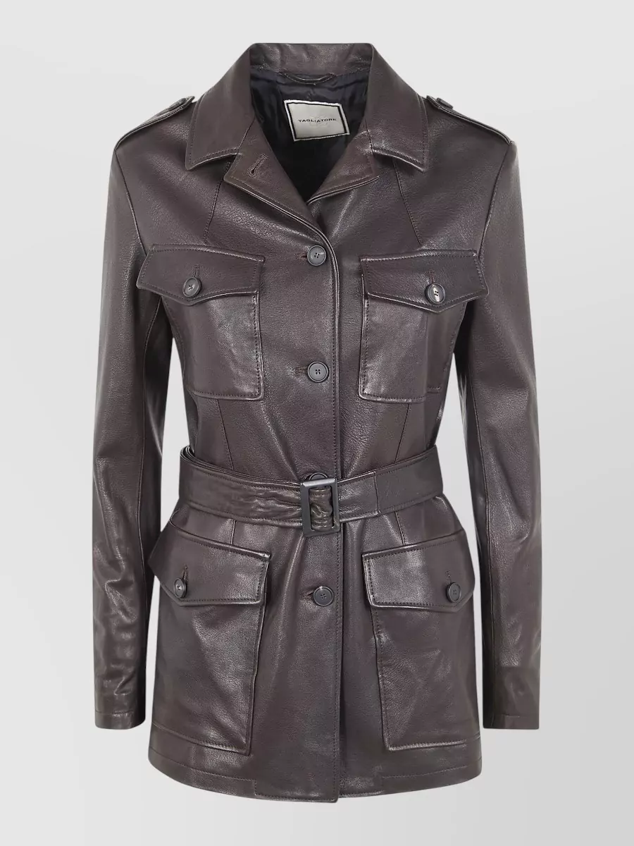 Tagliatore waist belted lapel buttoned jacket