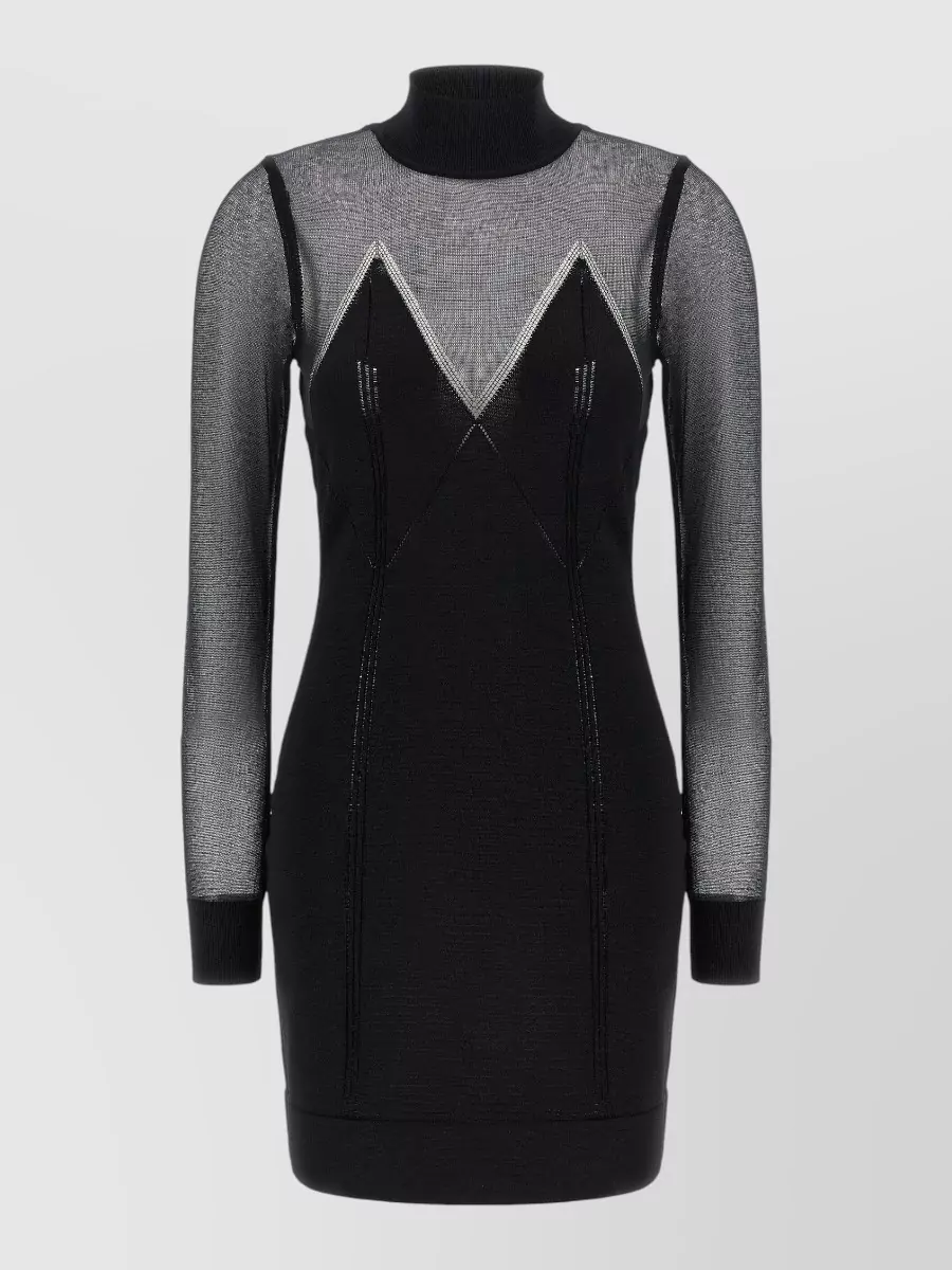 Elisabetta Franchi tulle long-sleeve crew-neck midi dress