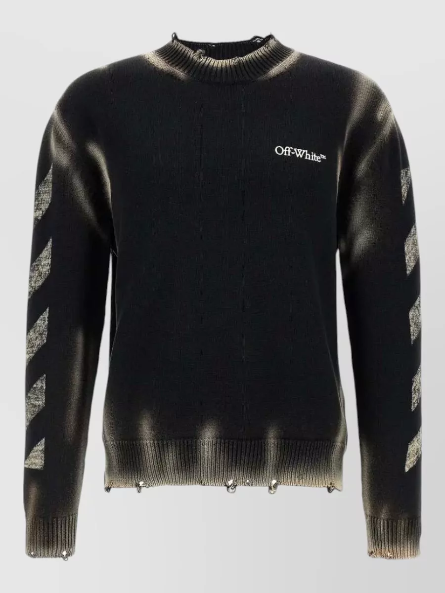 Off-White cotton crew-neck sweatshirt with ribbed cuffs