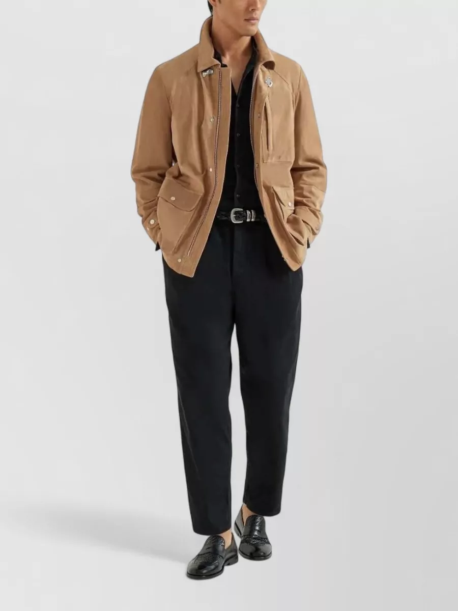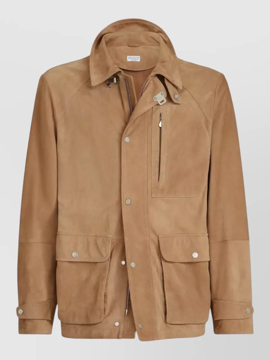 Brunello Cucinelli suede field jacket buttoned cuffs pockets