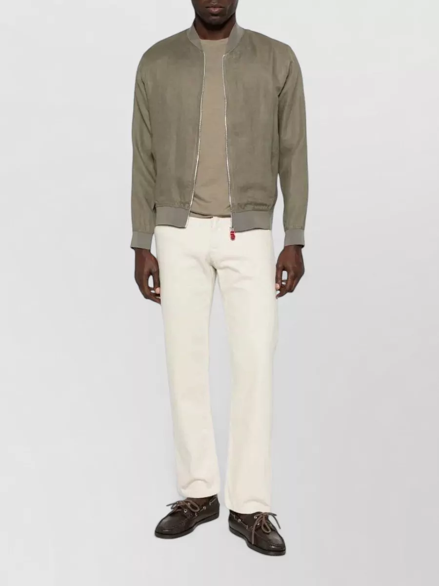 Kiton linen jacket ribbed trims side pockets