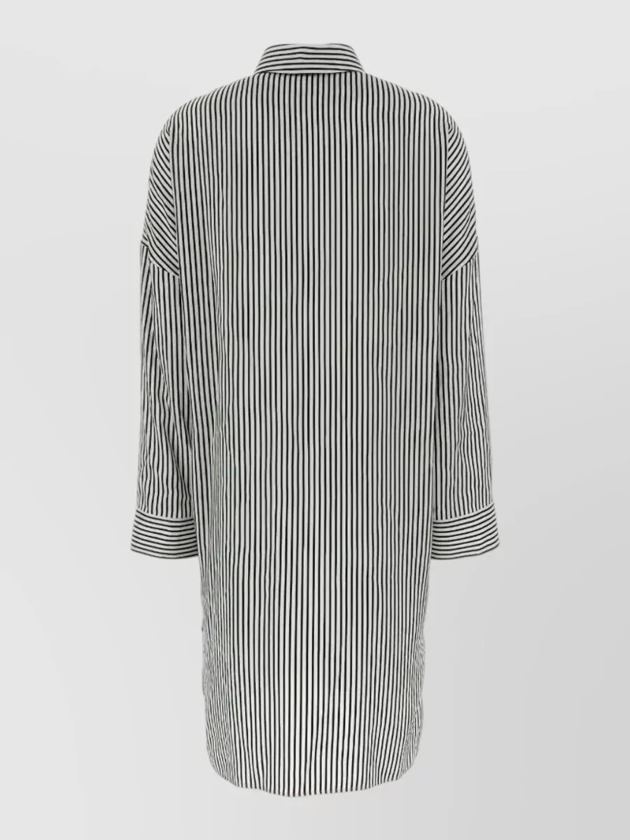 striped silk midi shirt dress