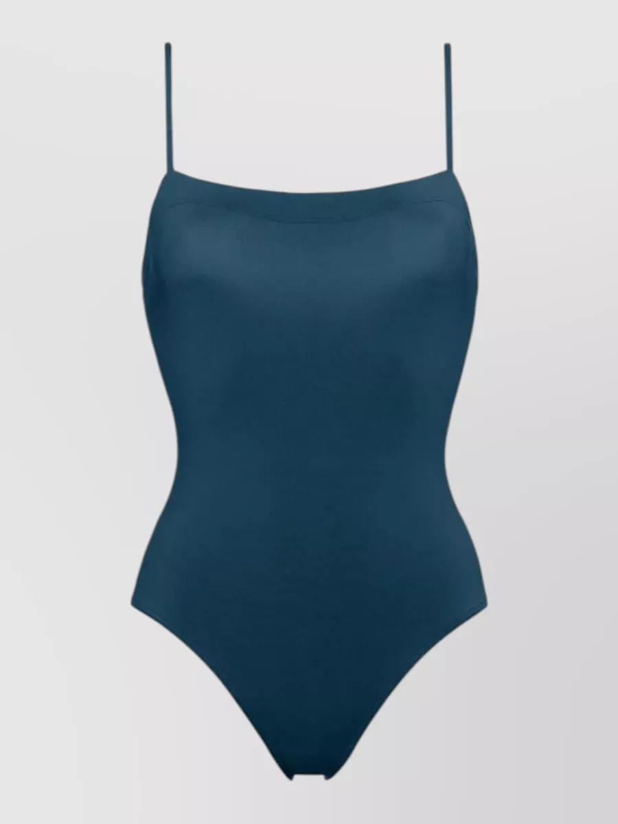 One-piece swimsuit with a close fit through the bust, waist, and hips, enhanced by a high-cut leg and slim straps