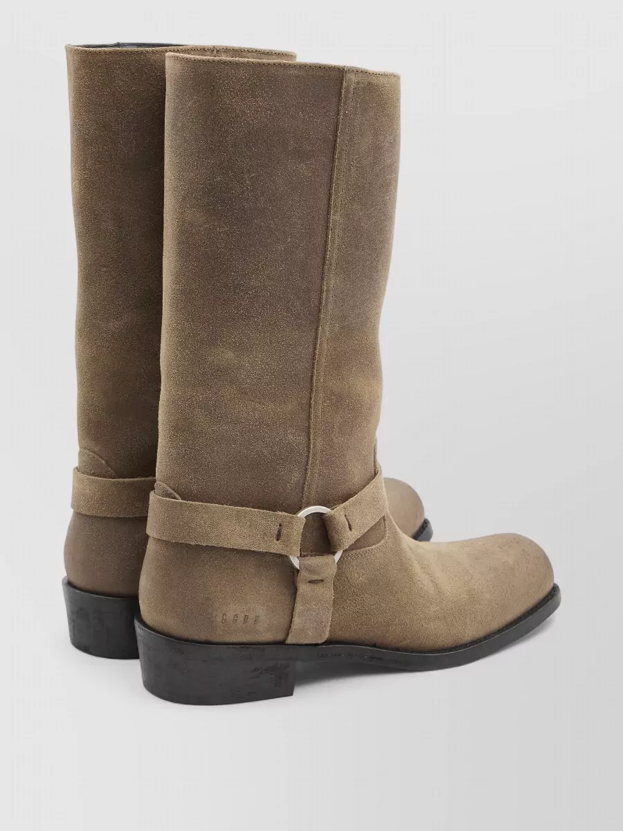 suede biker boots buckle strap leather