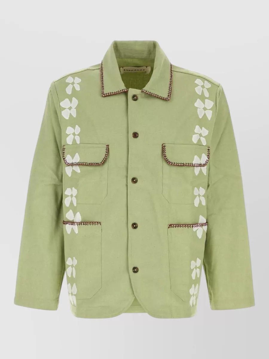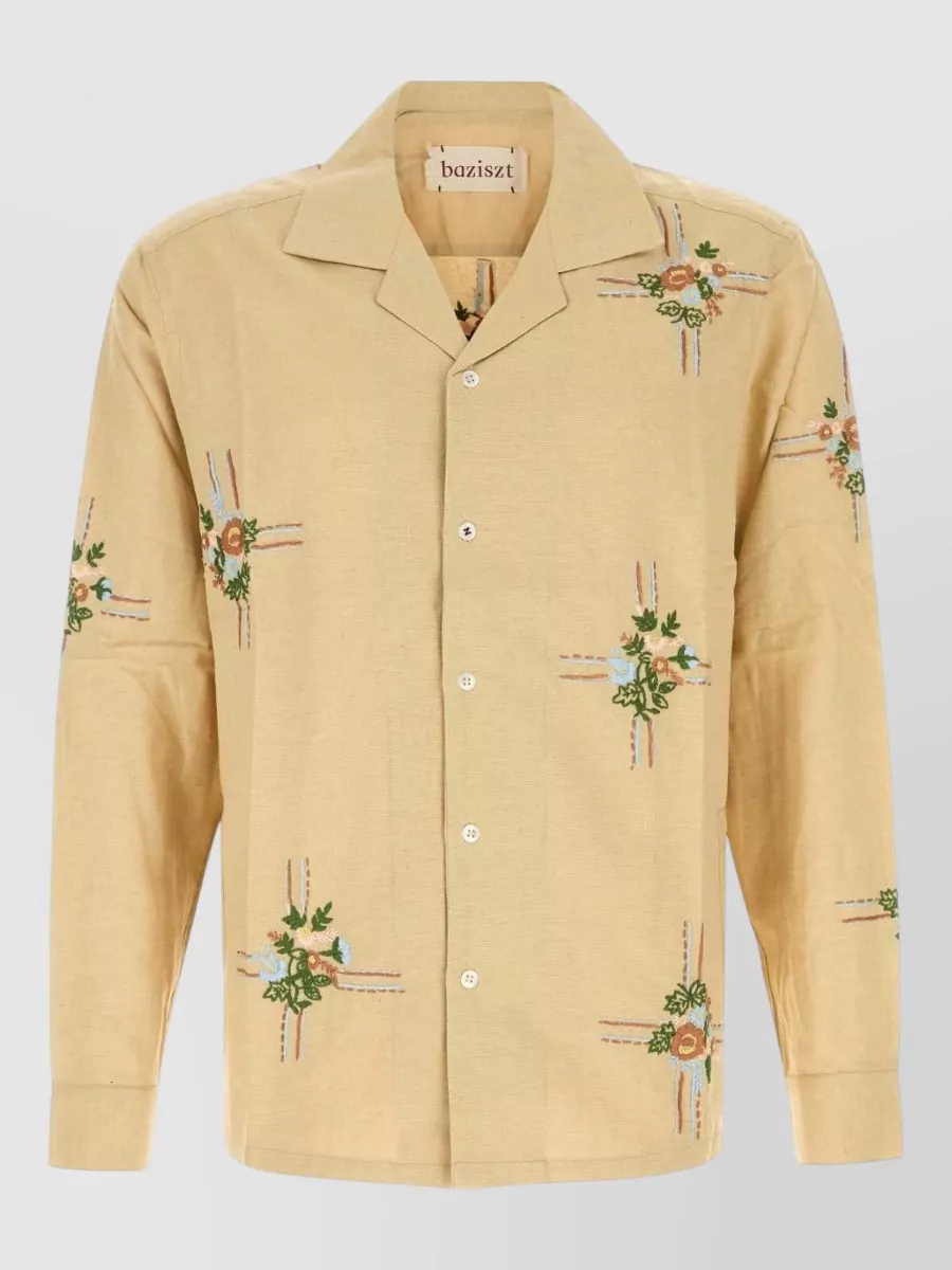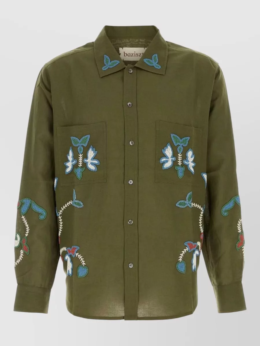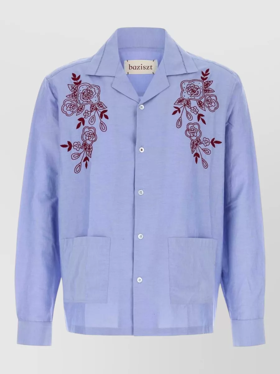 Baziszt cotton blend shirt long sleeves embroidery pockets