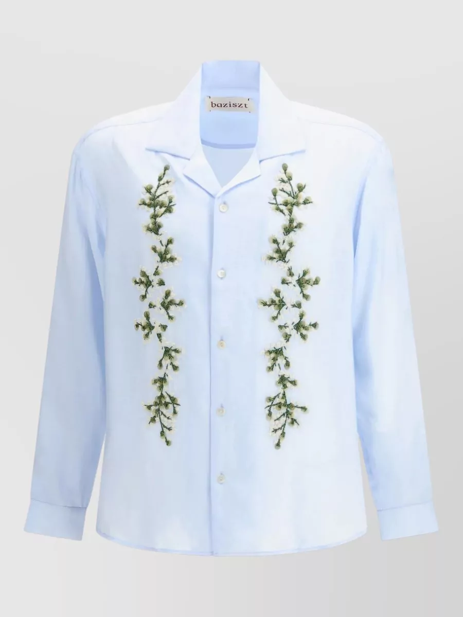 Baziszt silk cabin shirt long sleeves floral embroidery