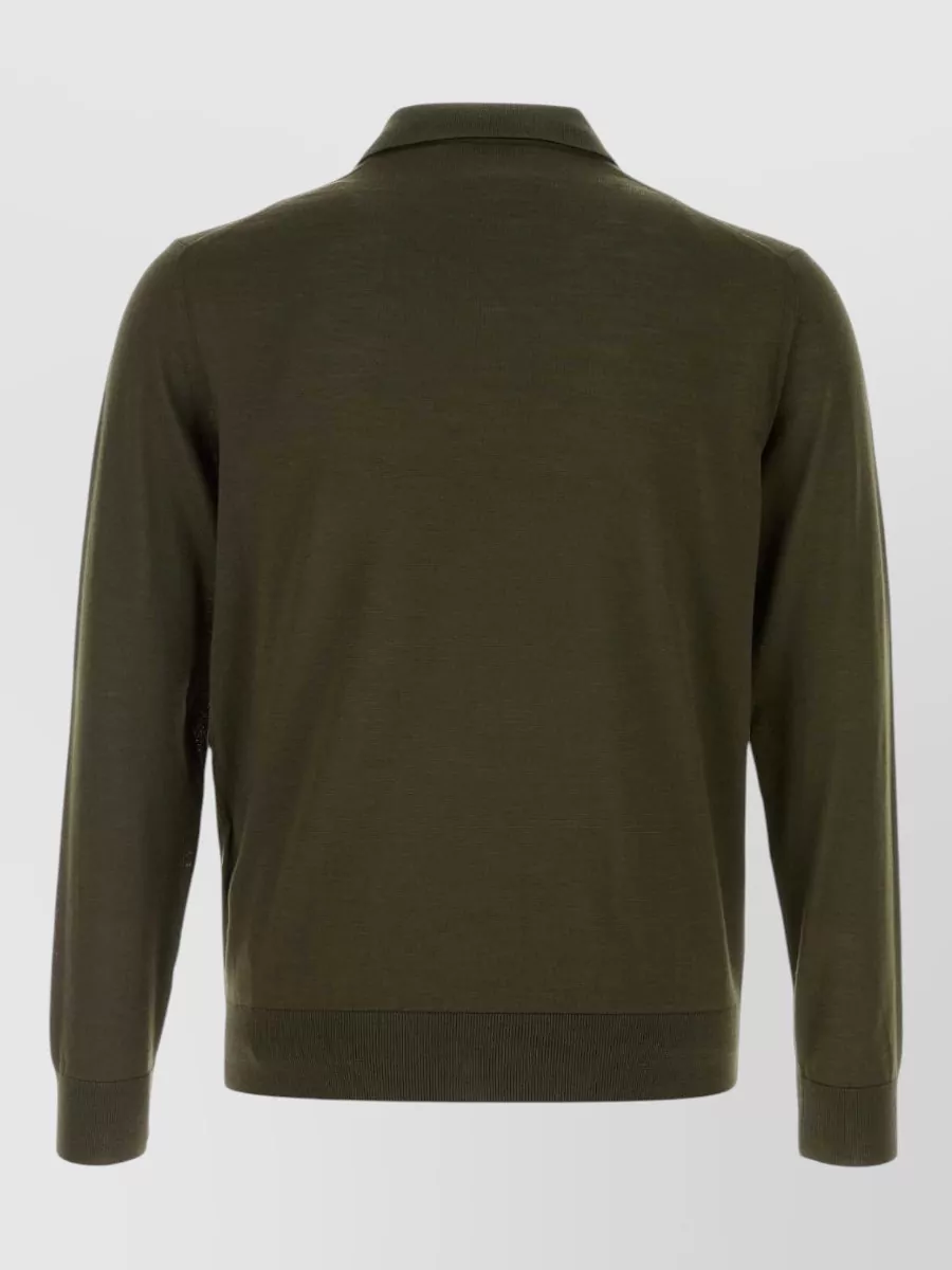 wool polo shirt ribbed cuffs hem