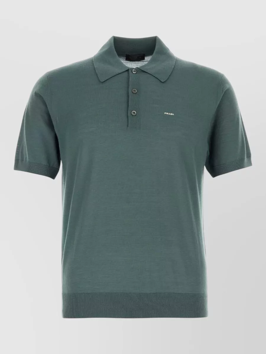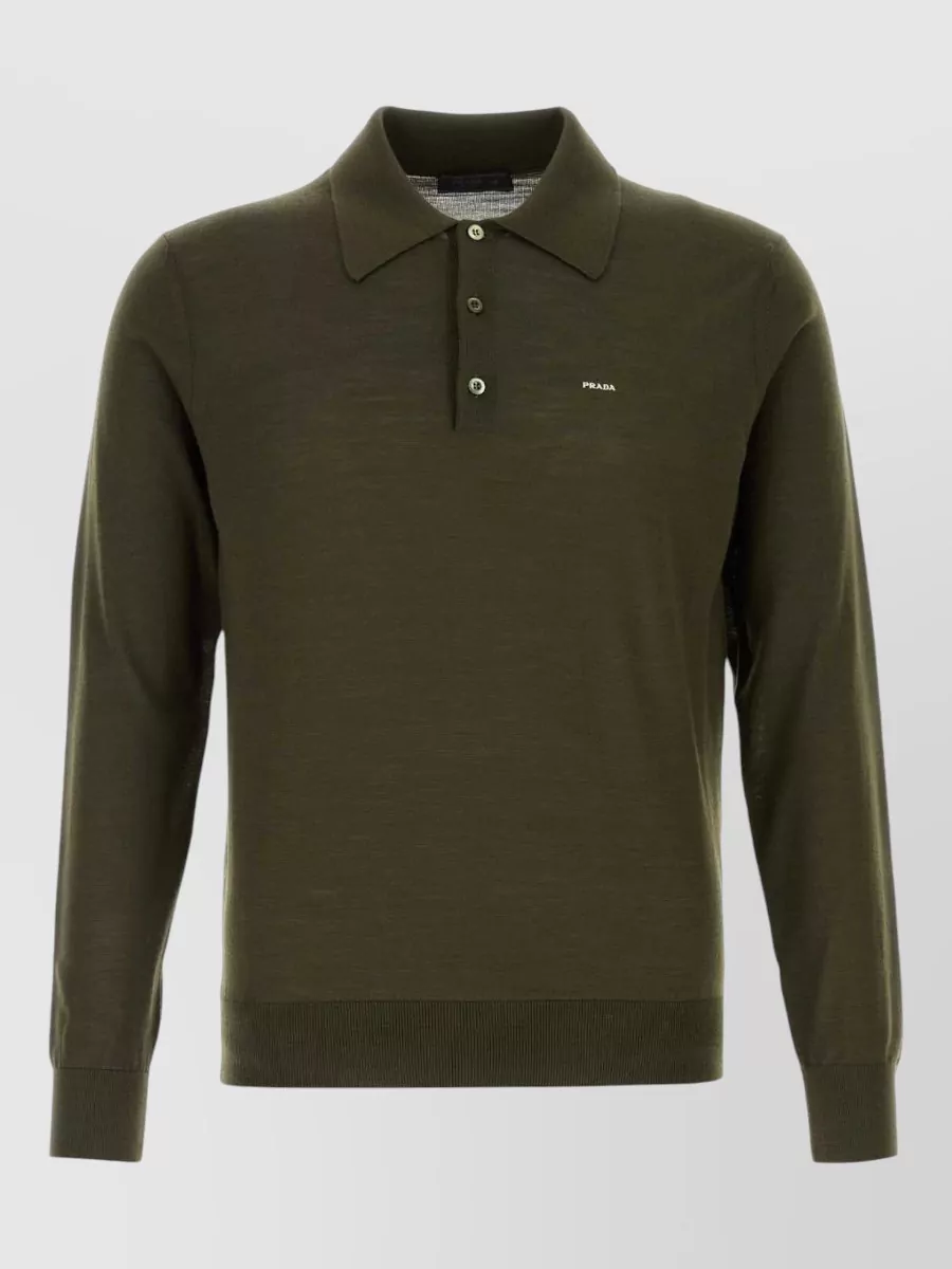 Prada wool polo shirt ribbed cuffs hem