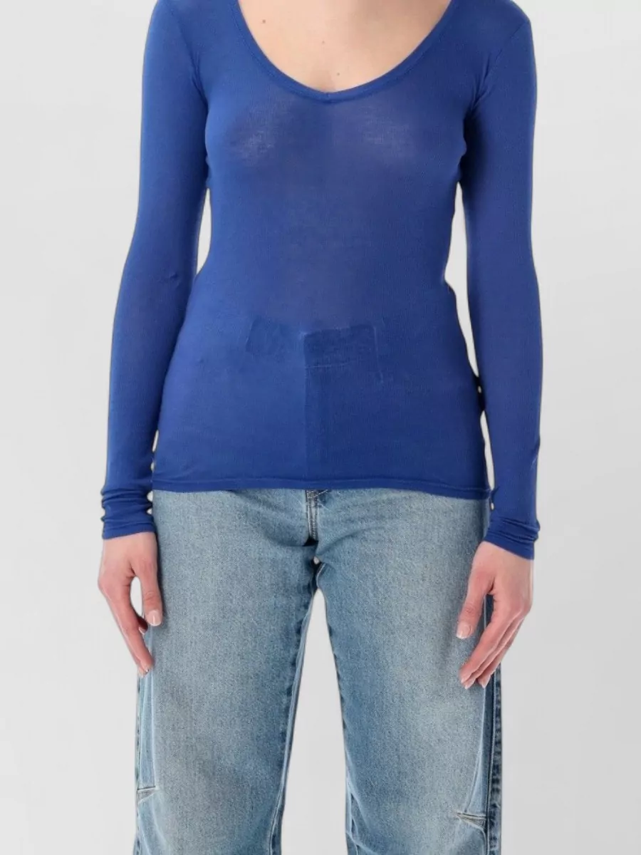 cotton ribbed slim-fit v-neck long-sleeve t-shirt