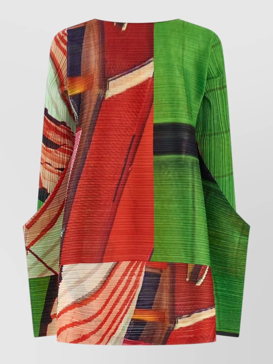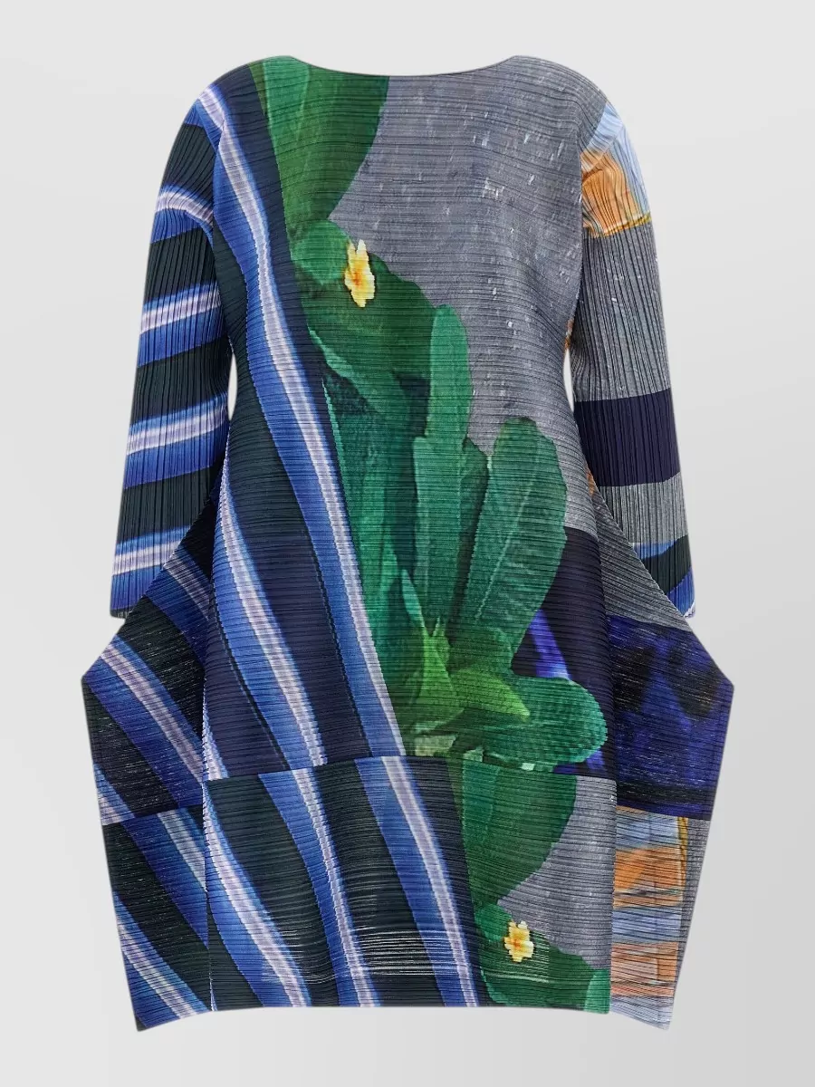 Pleats Please Issey Miyake city collage knee length long sleeve dress