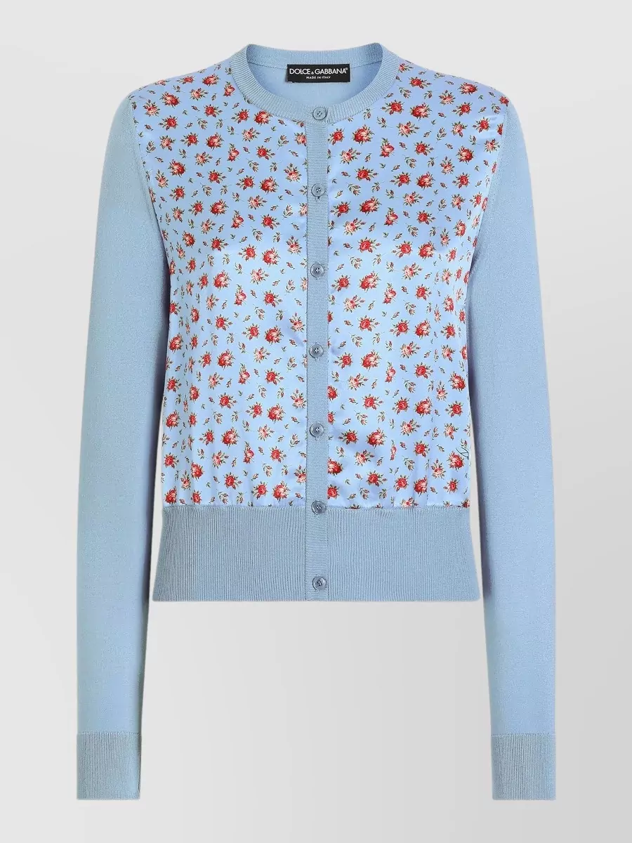 Dolce&Gabbana silk printed crew neck long sleeve ribbed cardigan