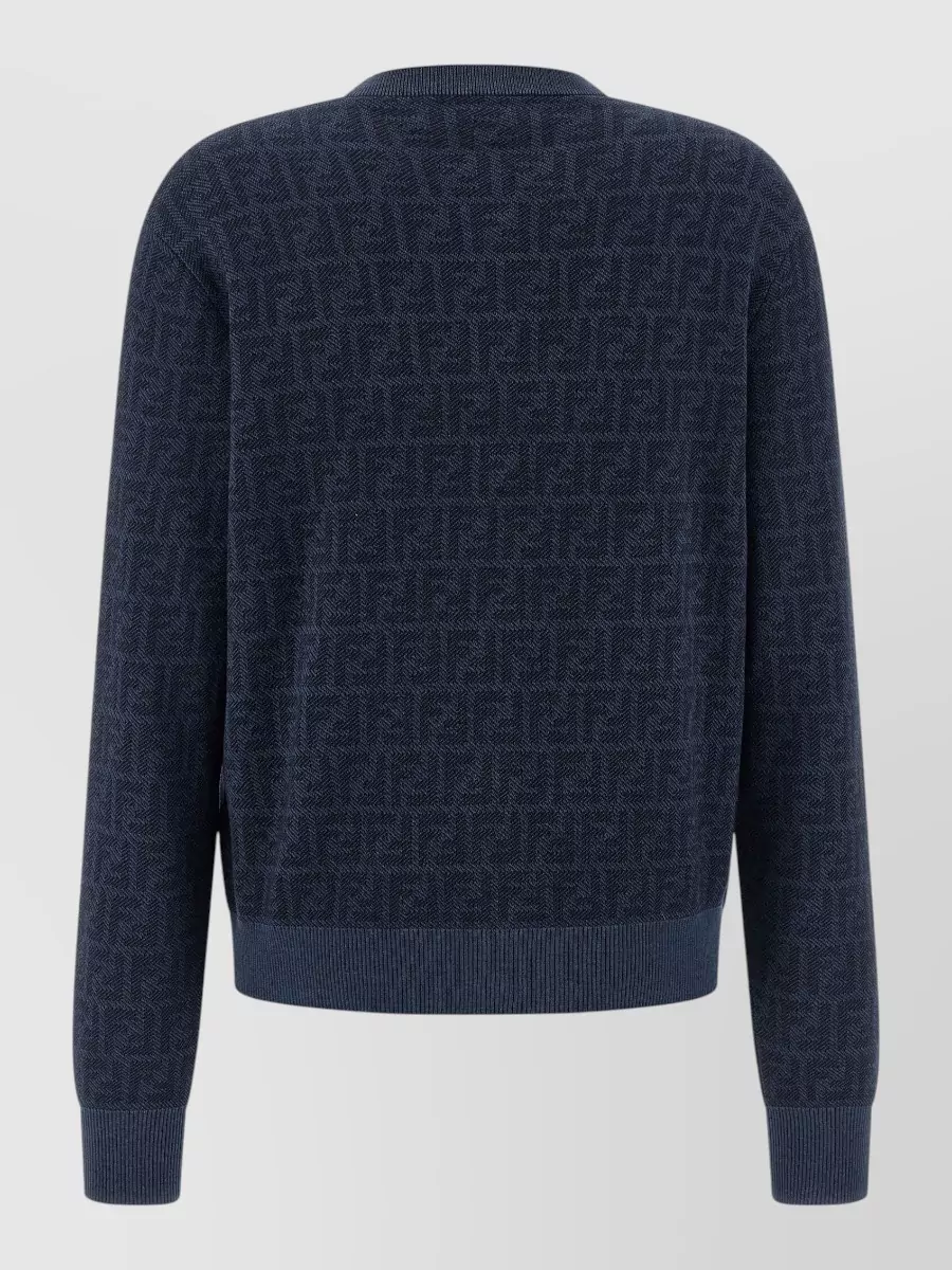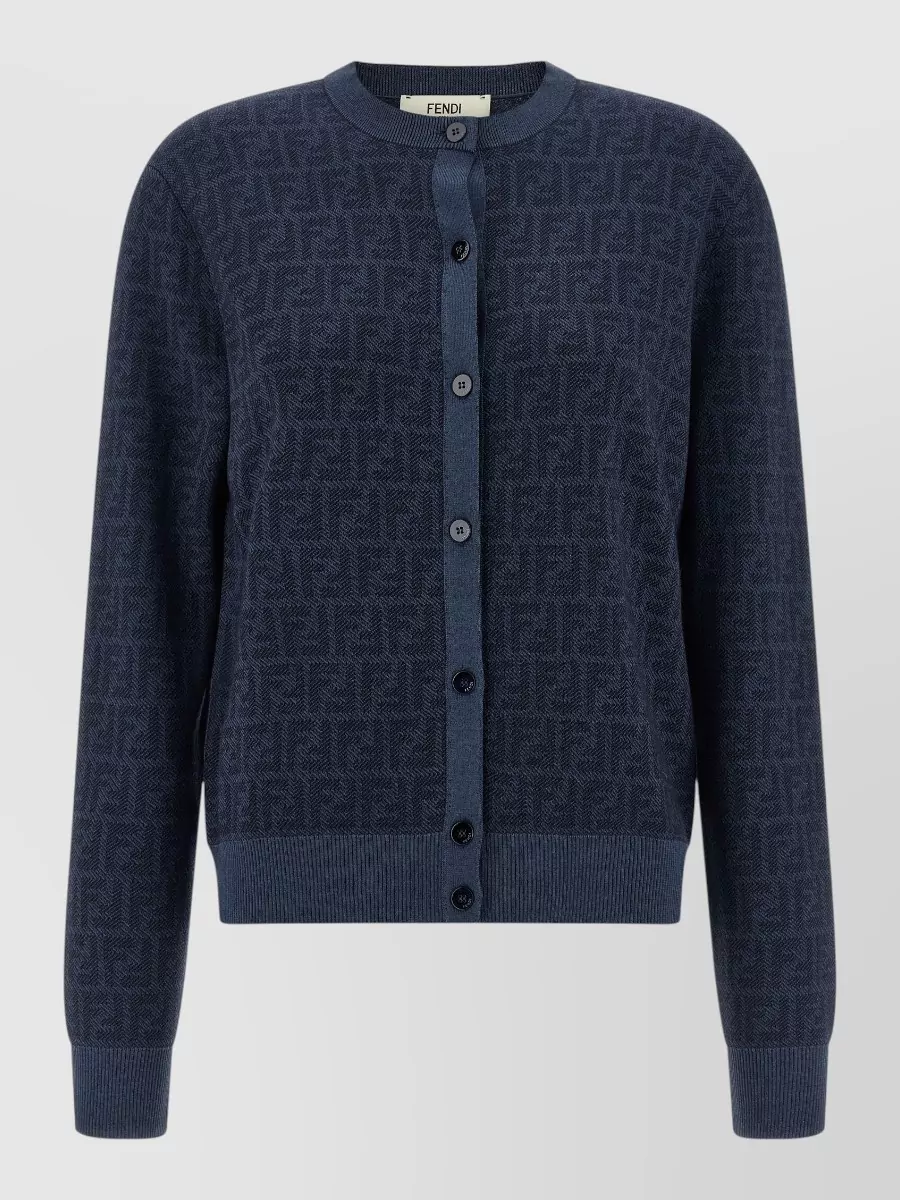Fendi silk wool micro ff jacquard ribbed trim cardigan