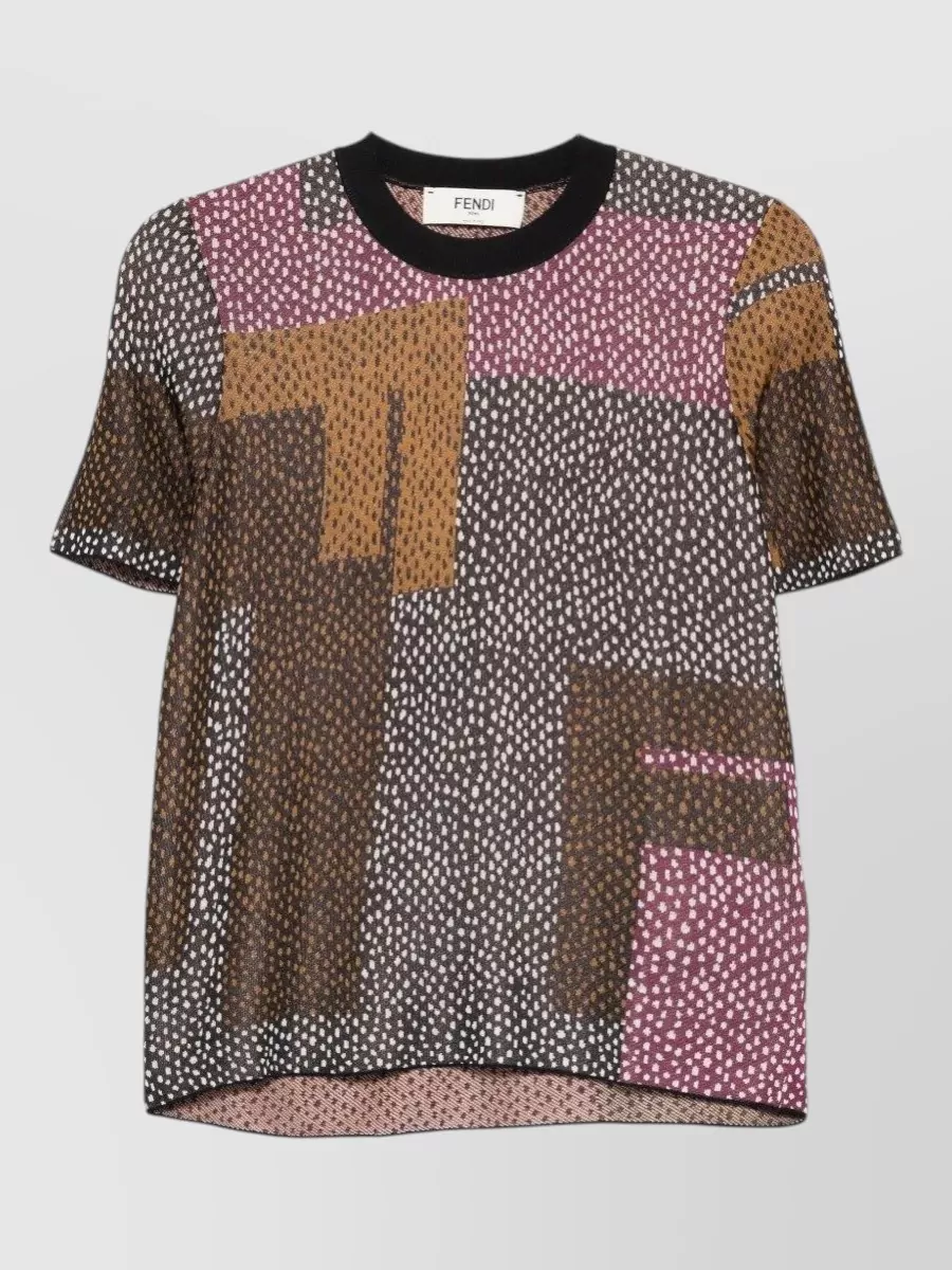 Fendi ribbed jacquard short-sleeve crew-neck knitted top