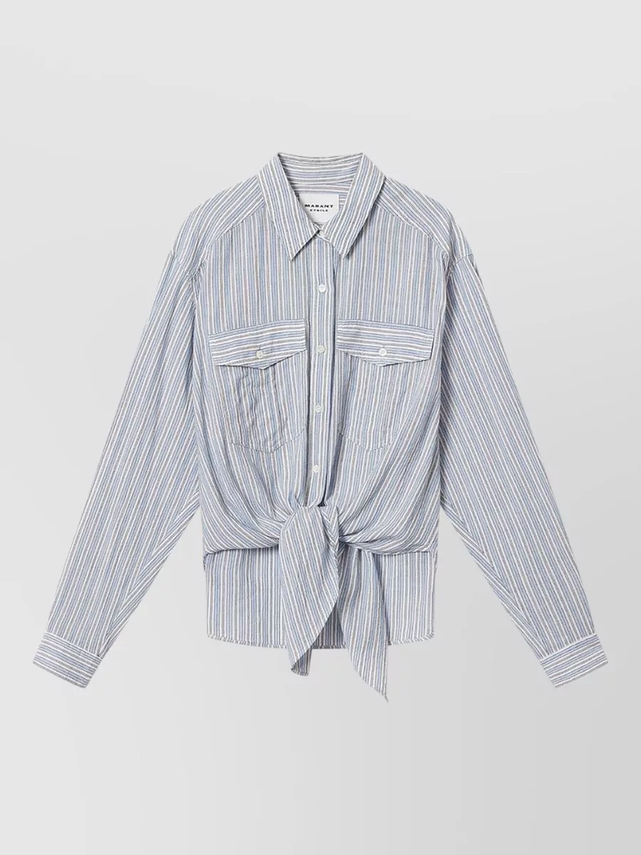Tie up cotton voile striped shirt