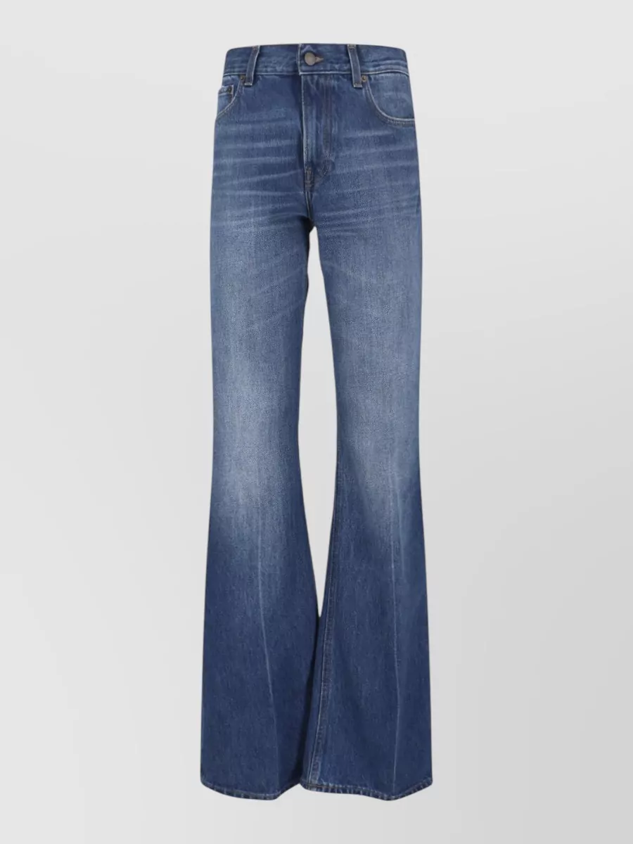 Mid-rise waist with a fitted hip and thigh that gradually flares out through the leg