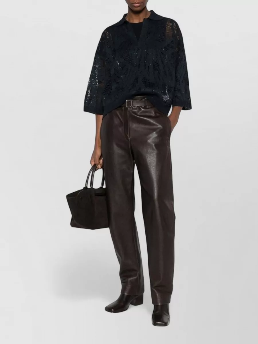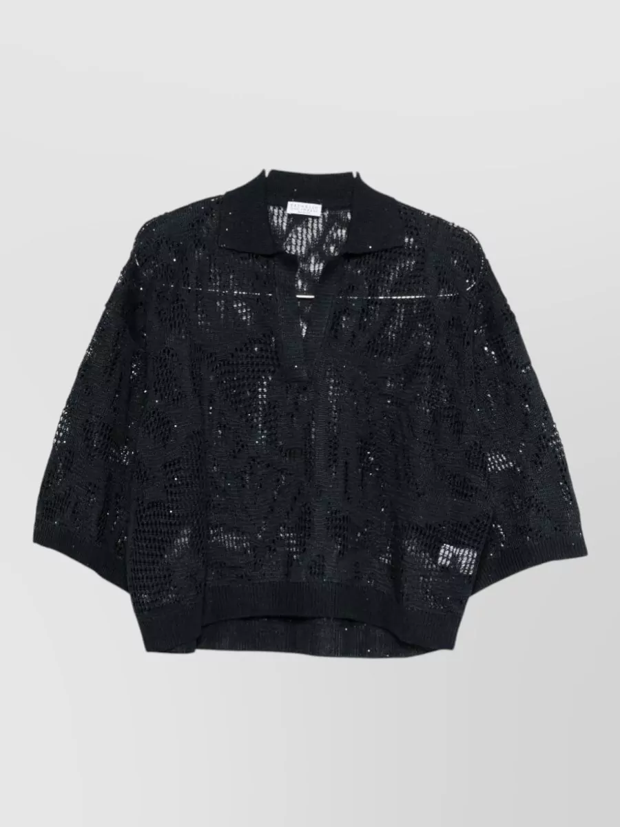 Brunello Cucinelli linen shirt collared knit sheer 34 sleeves