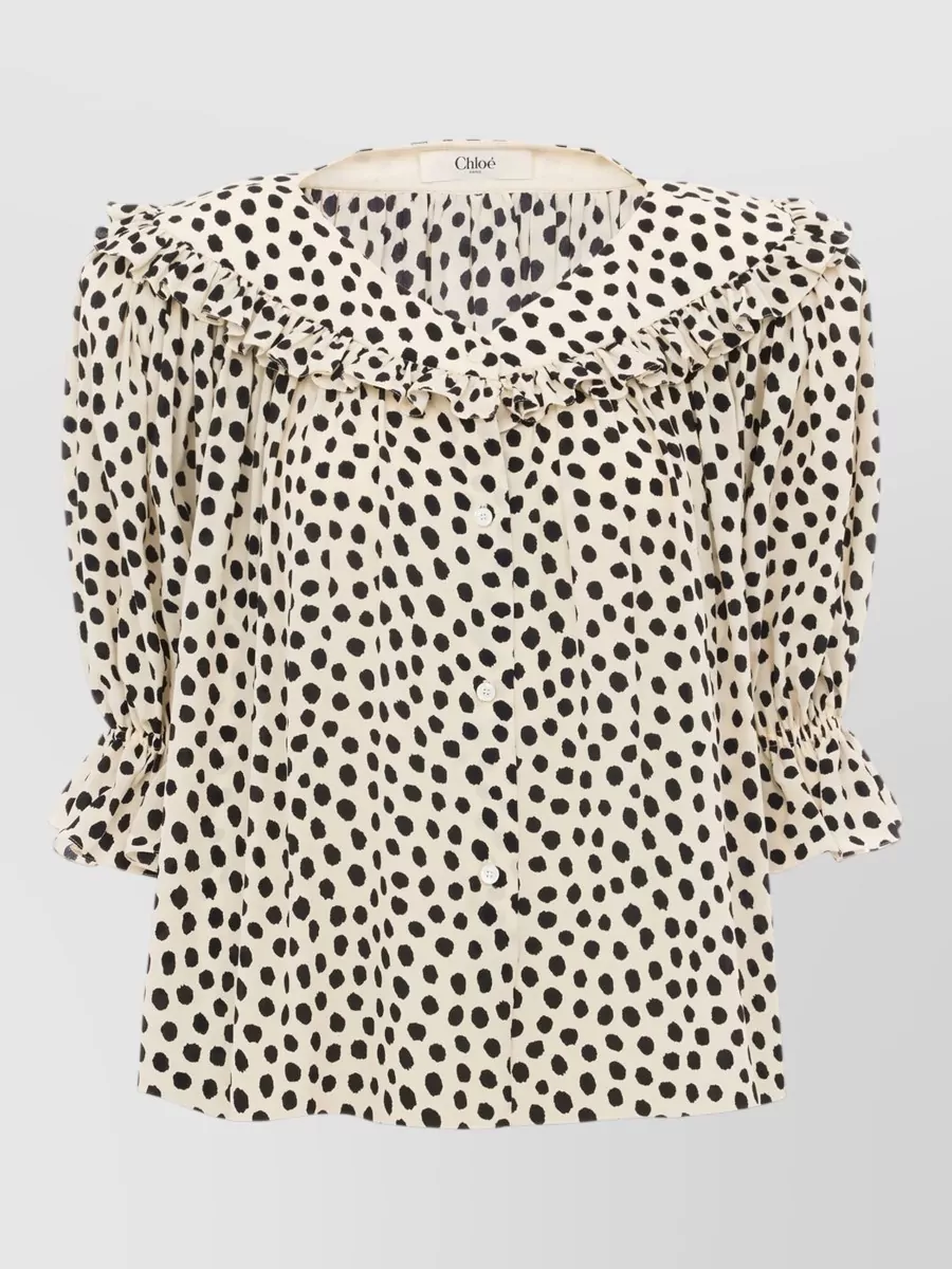 Chloé silk dotted ruffled puff-sleeve blouse