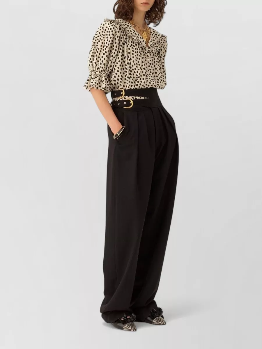 silk dotted ruffled puff-sleeve blouse