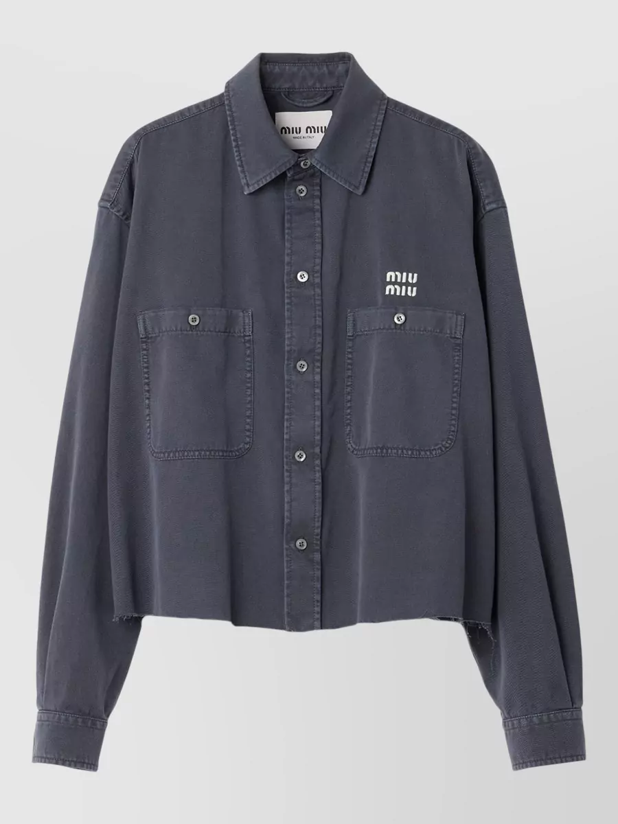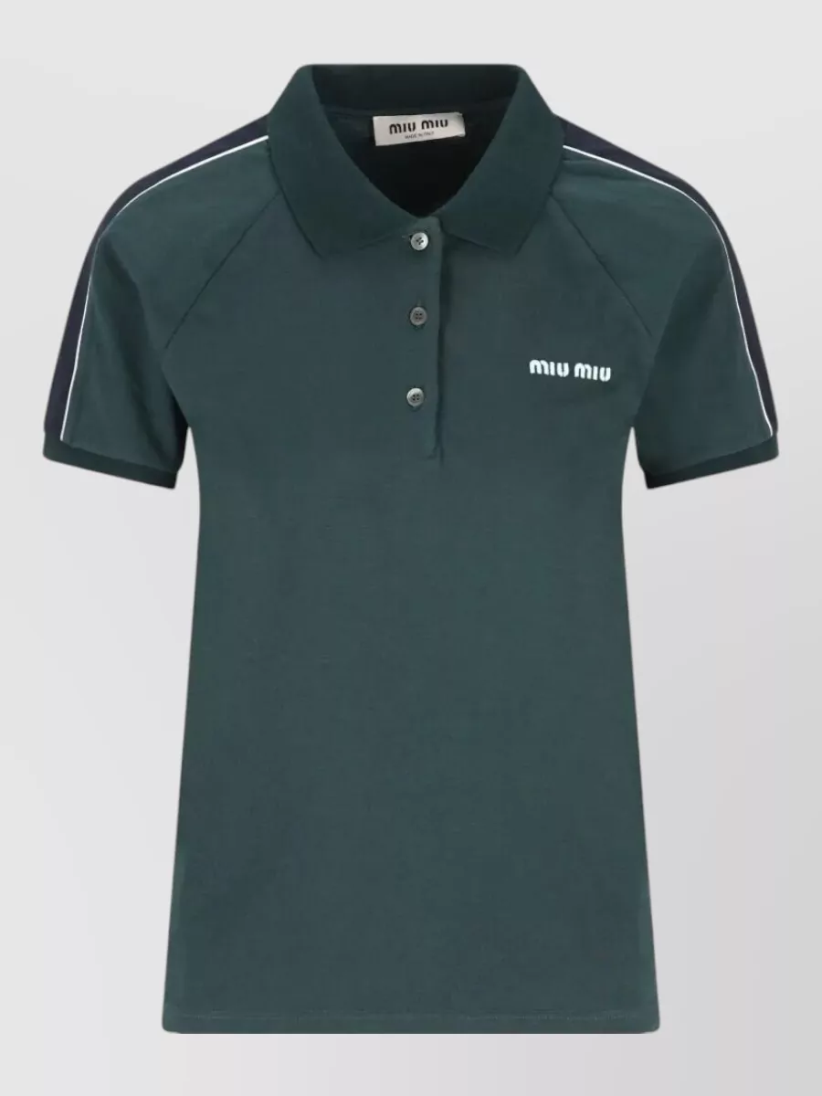 Miu Miu collared long sleeve polo with ribbed cuffs