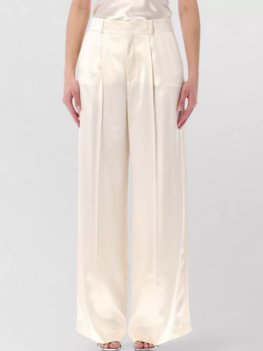 Alberta Ferretti satin trousers belt loops pleats wide leg