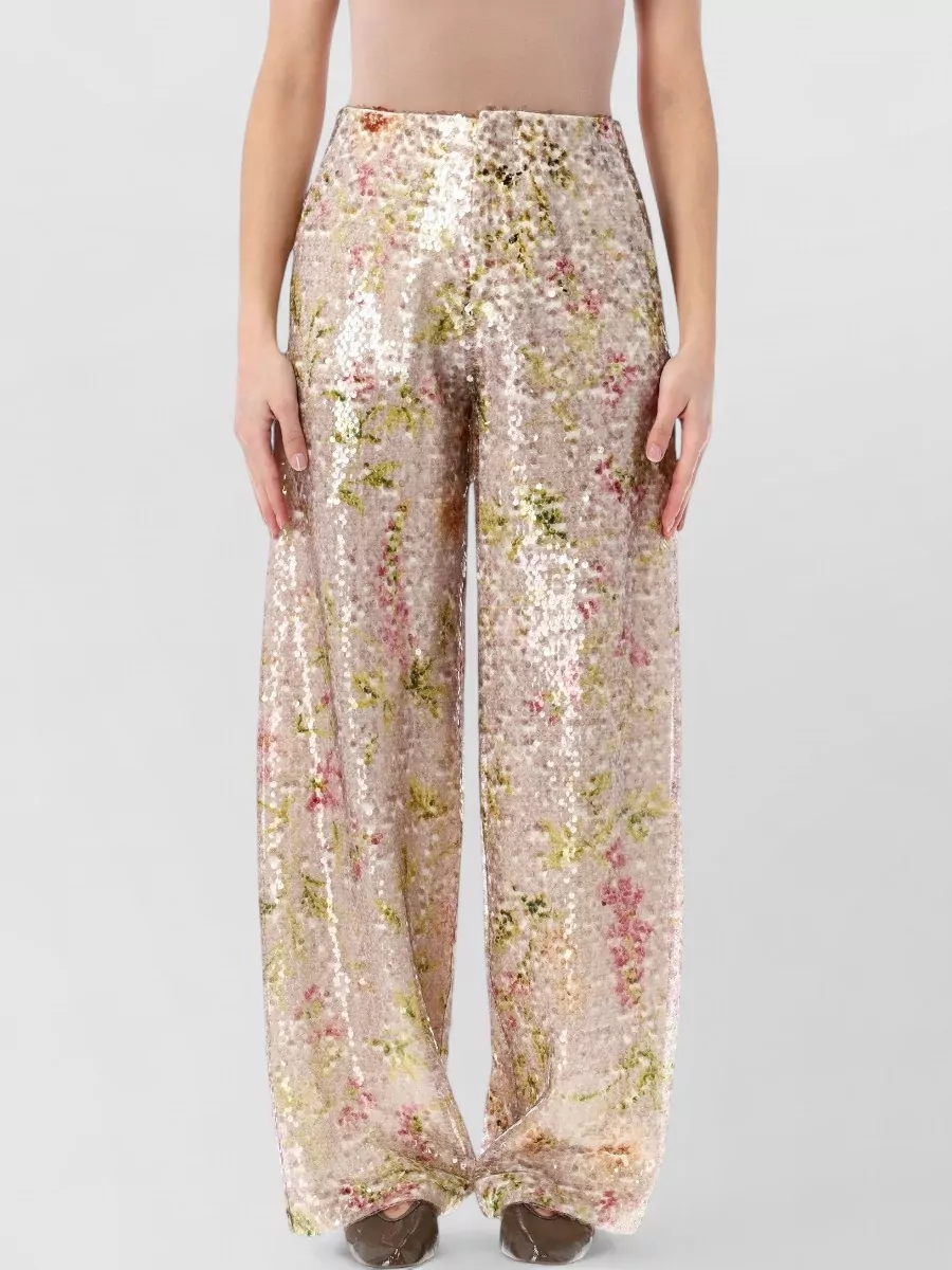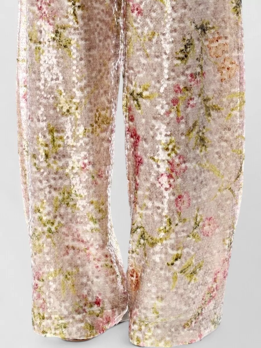 Alberta Ferretti floral sequin wide leg trousers side pockets