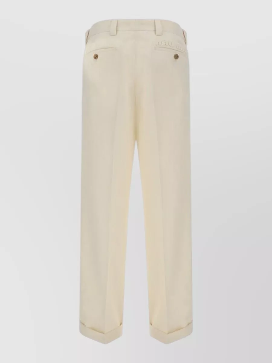Miu Miu cotton trousers pleated front turn up cuffs