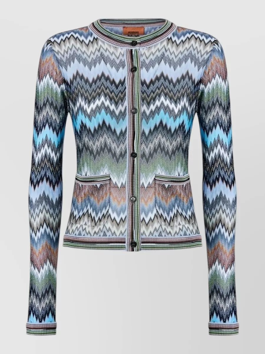 Missoni chevron knit cardigan round neck pockets