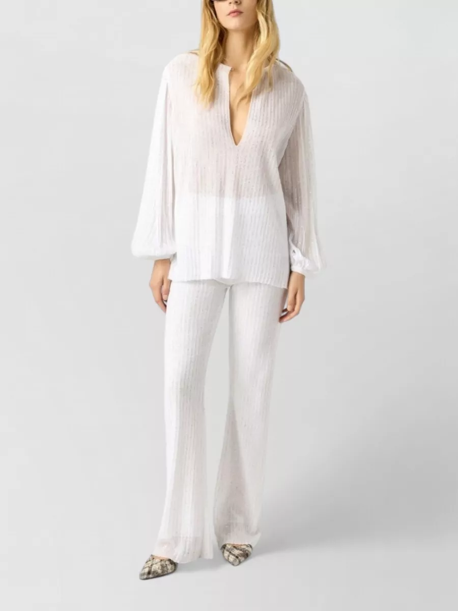 zigzag flared trousers textured metallic threads
