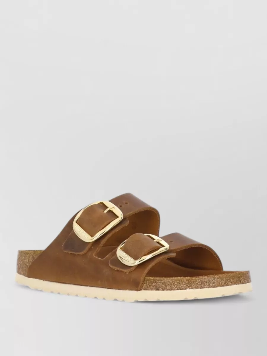 Big buckle oiled leather slides & flip flops