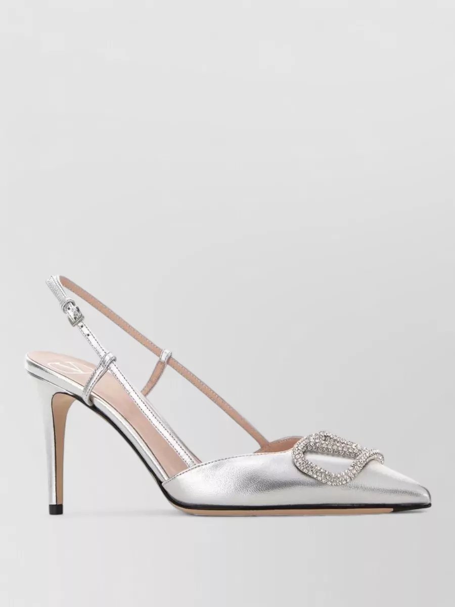 Valentino Garavani silk floral-embroidered ankle-strap pumps